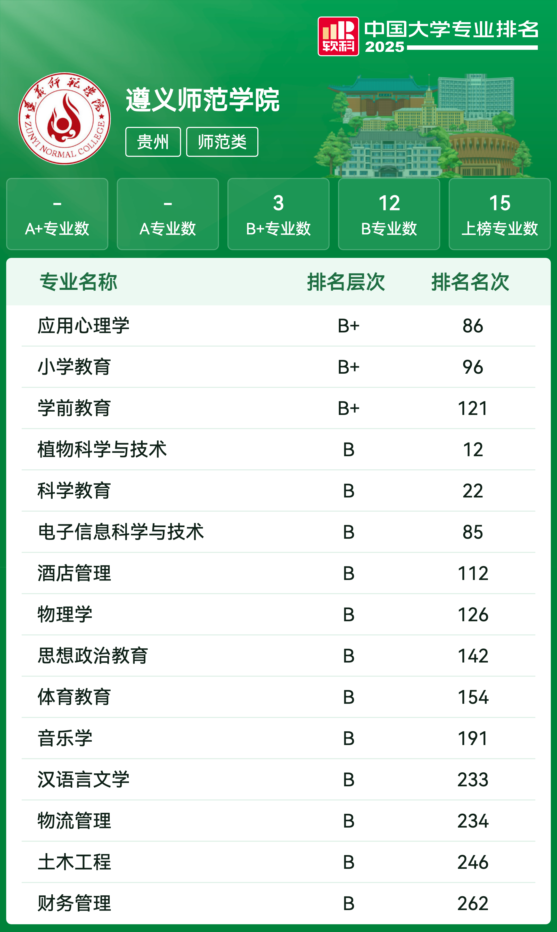 | 学前教育 | B+ | 121 |