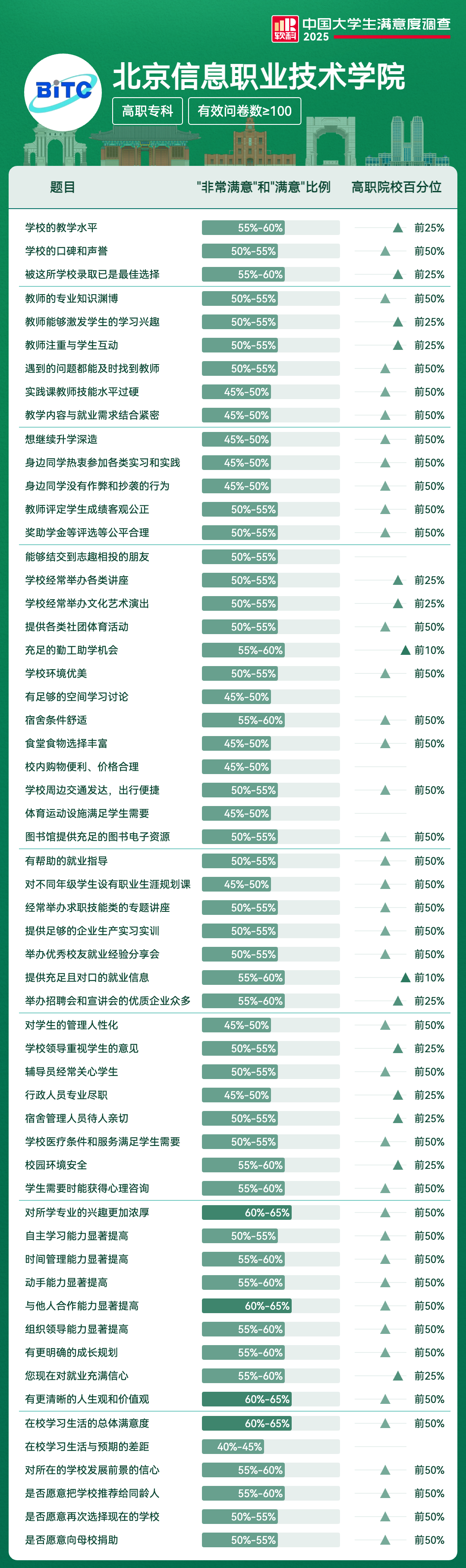 | 提供充足且对口的就业信息 | 55%-60% | 前10% |