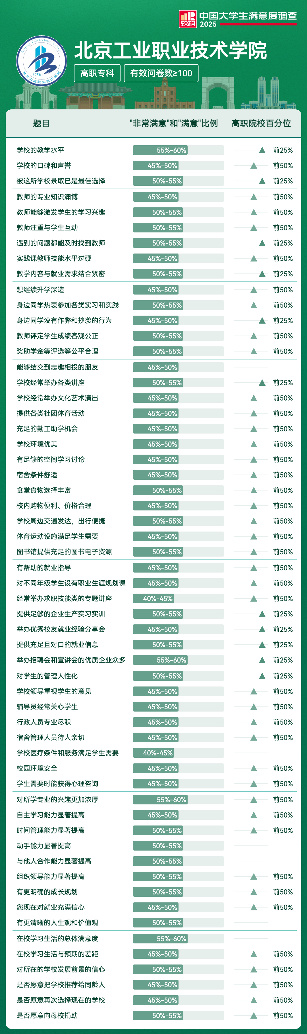 | 教学内容与就业需求结合紧密 | 50%-55% | 前25% |