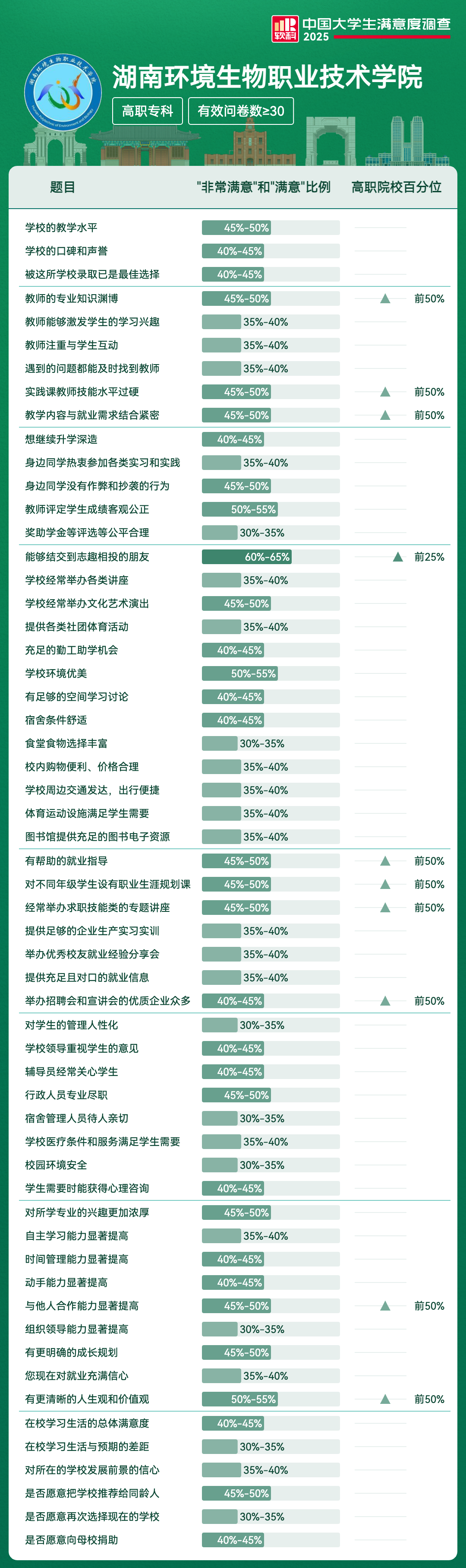 | 有帮助的就业指导 | 45%-50% | 前50% |