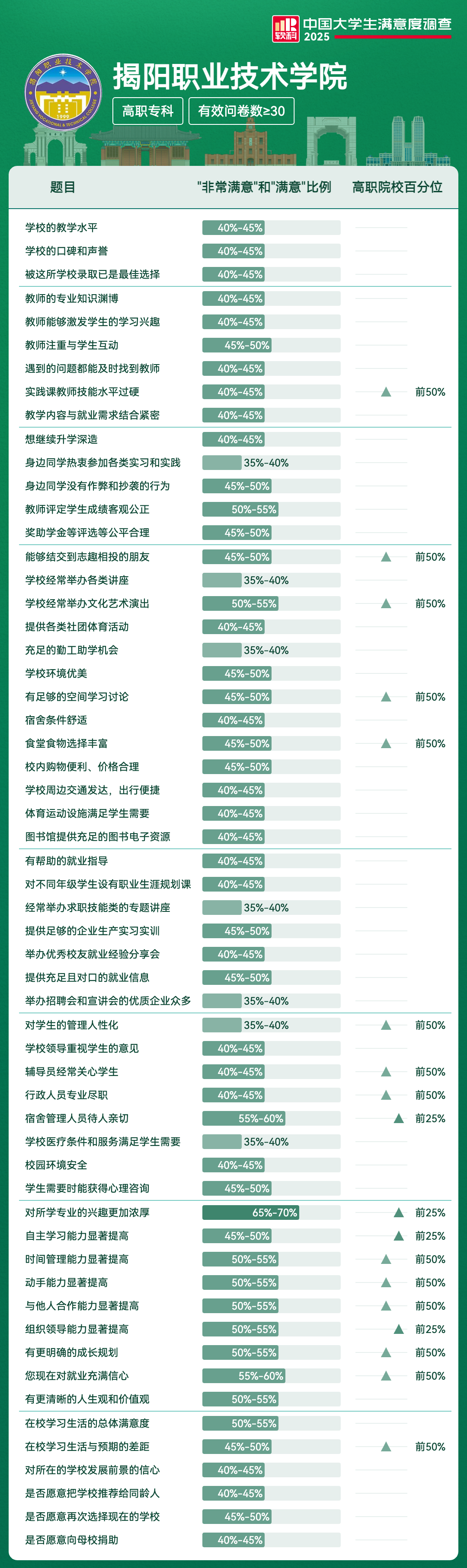 | 实践课教师技能水平过硬 | 40%-45% | 前50% |