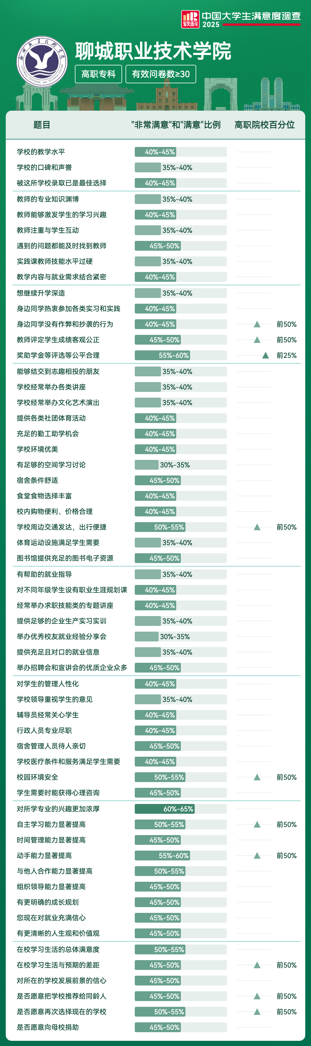 | 教师评定学生成绩客观公正 | 45%-50% | 前50% |