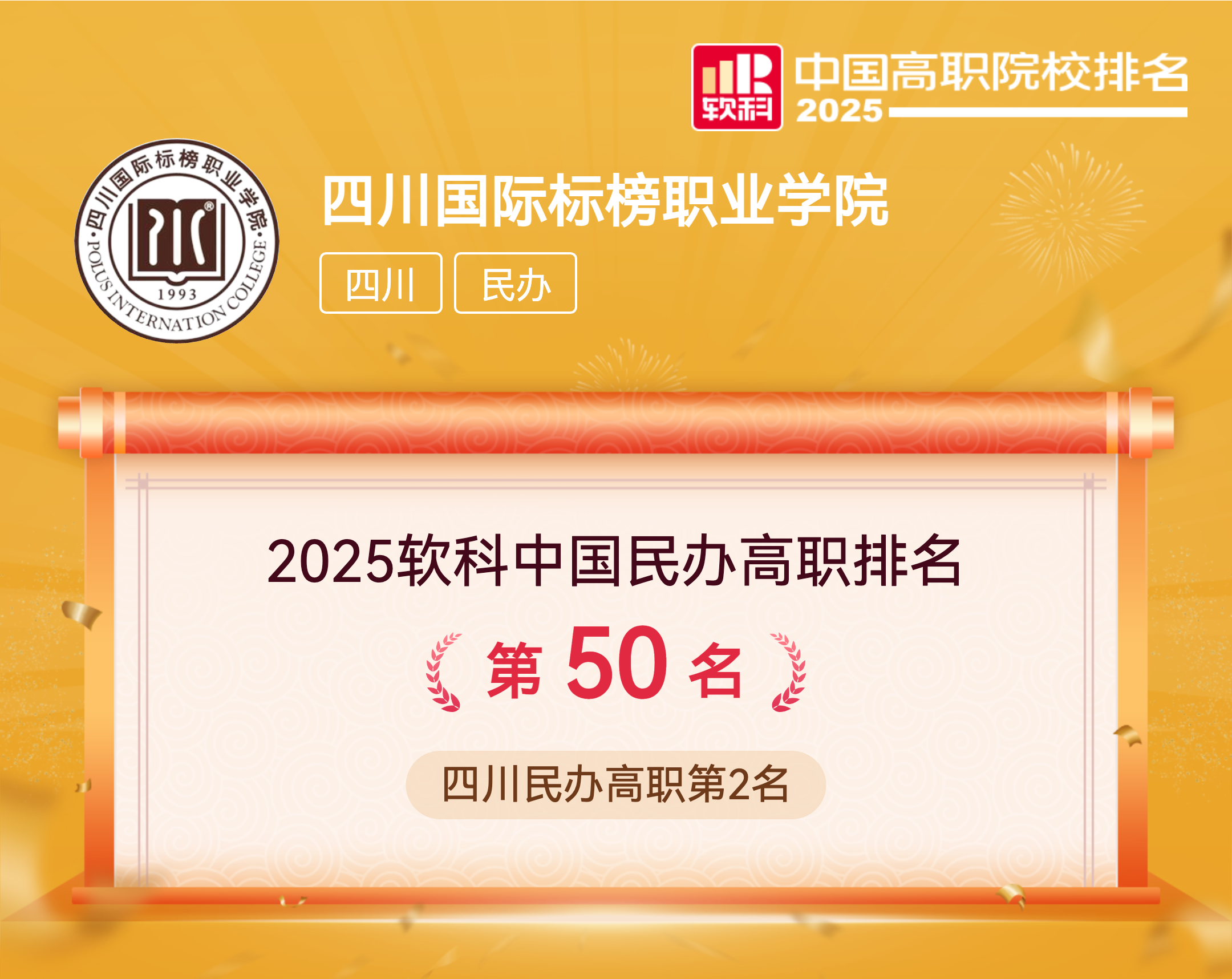 软科中国高职院校排名于2023年首次发布。排名旨在用丰富的客观数据对中国高职高专院校的办学水平进行监测式评价,为考生择校和社会了解中国千余所高职高专院校提供参考。