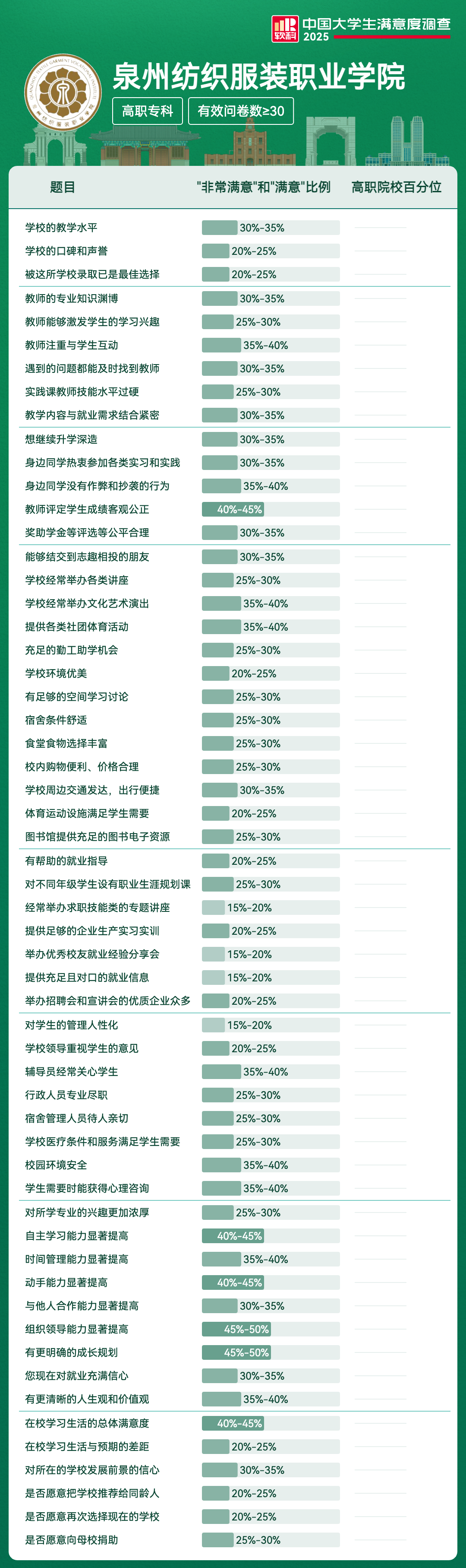 | 满意度前5项 | 满意及以上比例 | 全国高校排名区间 |