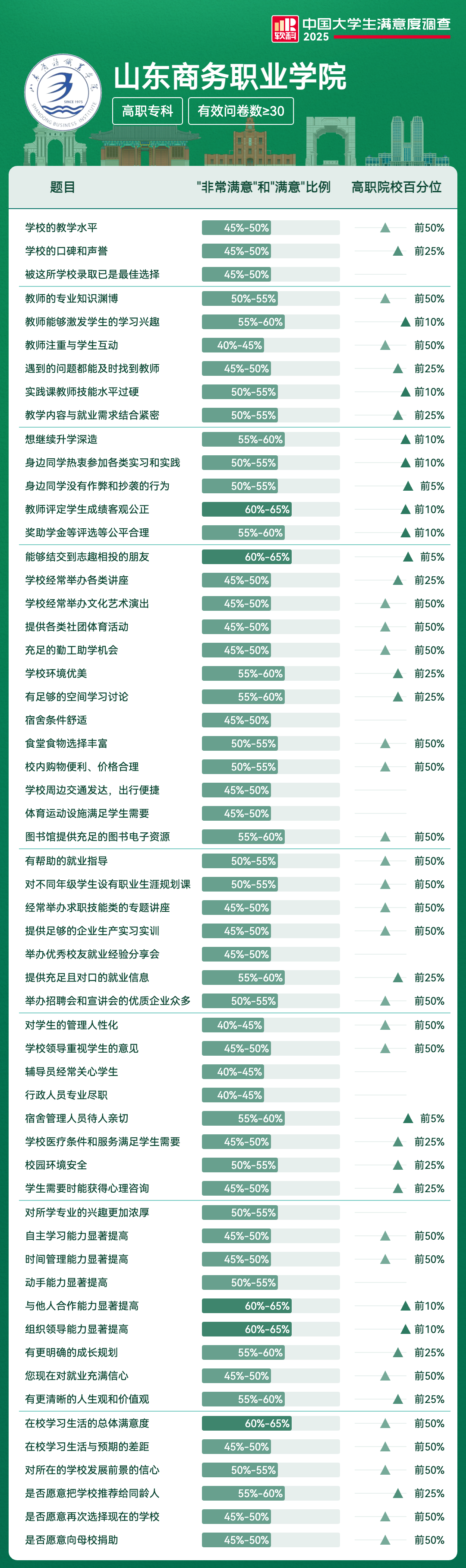 | 宿舍管理人员待人亲切 | 55%-60% | 前5% |