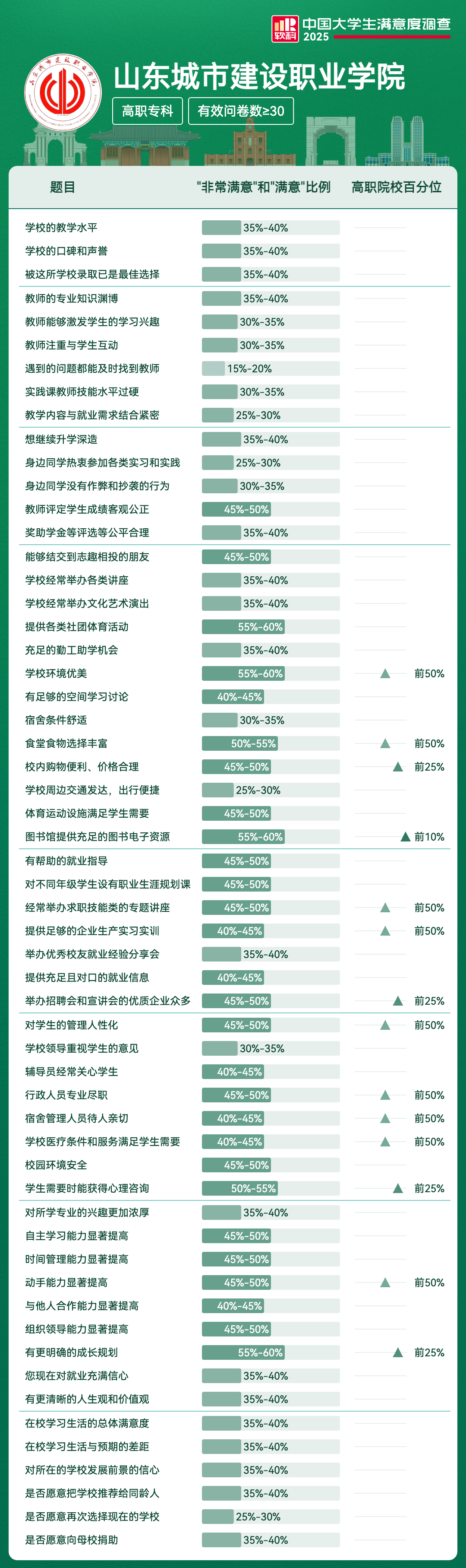 | 举办招聘会和宣讲会的优质企业众多 | 45%-50% | 前25% |