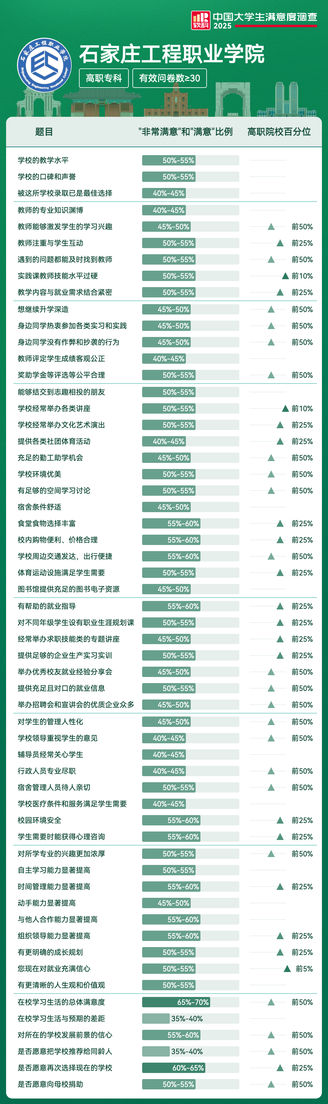 | 学校经常举办各类讲座 | 50%-55% | 前10% |