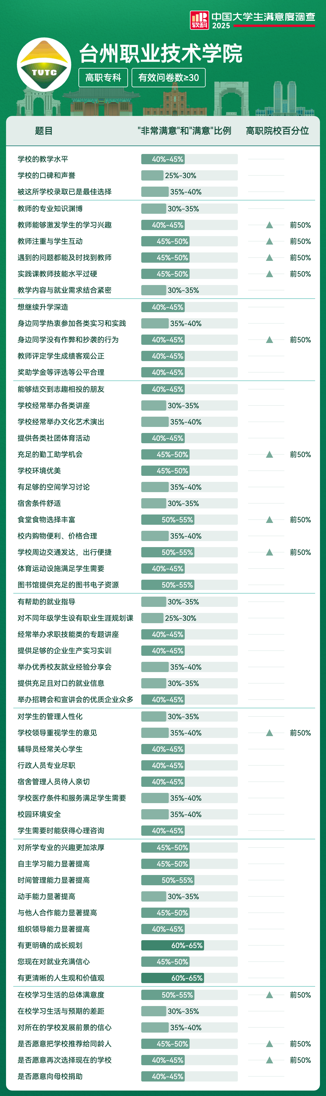 | 实践课教师技能水平过硬 | 45%-50% | 前50% |