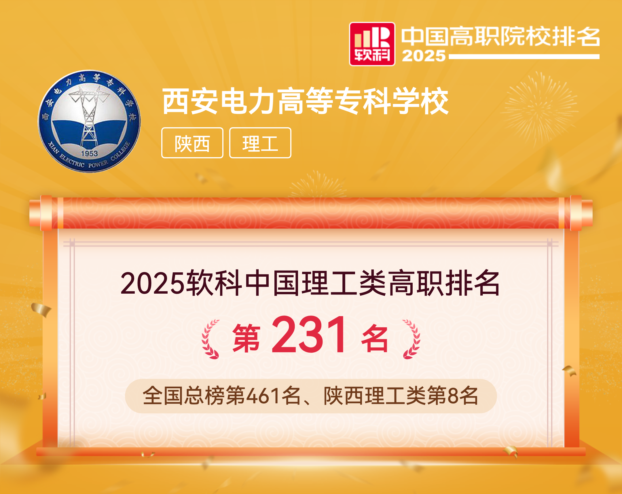 软科中国高职院校排名于2023年首次发布。排名旨在用丰富的客观数据对中国高职高专院校的办学水平进行监测式评价,为考生择校和社会了解中国千余所高职高专院校提供参考。