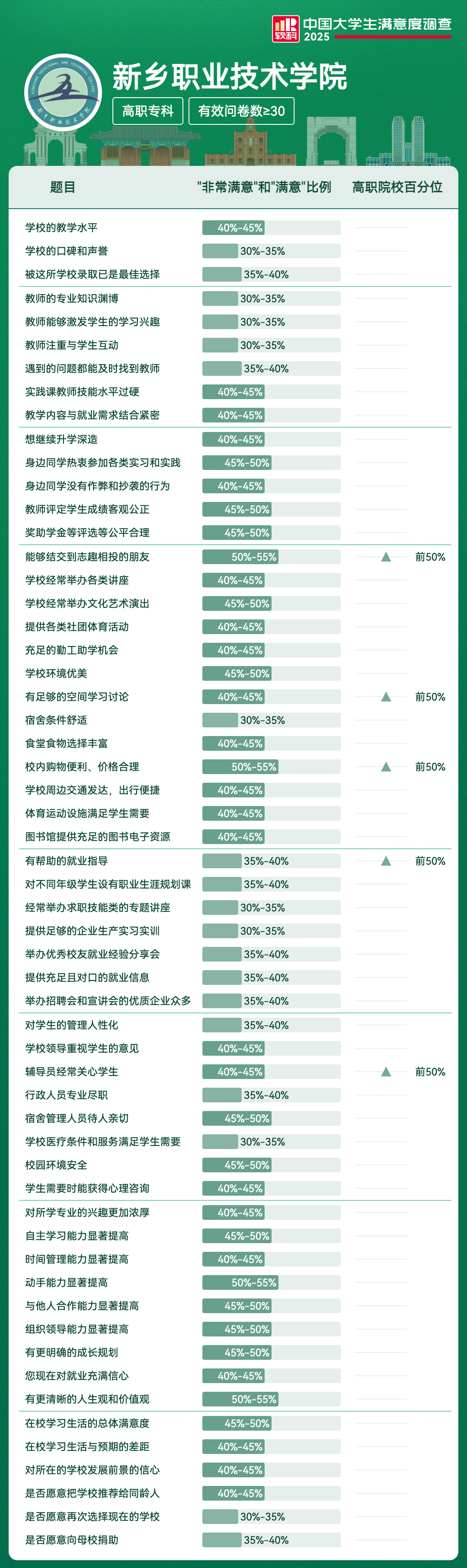 | 有帮助的就业指导 | 35%-40% | 前50% |