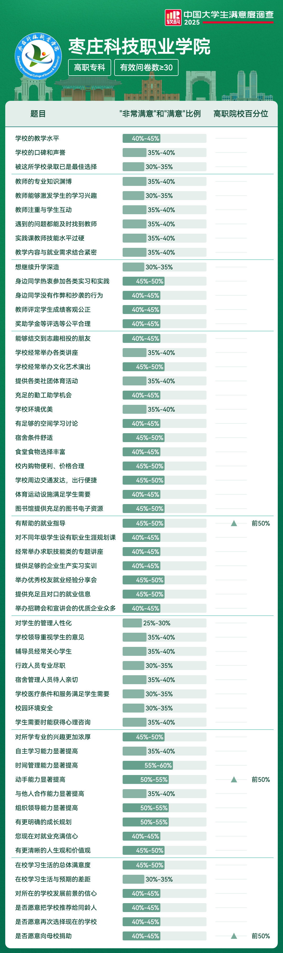 | 有帮助的就业指导 | 45%-50% | 前50% |