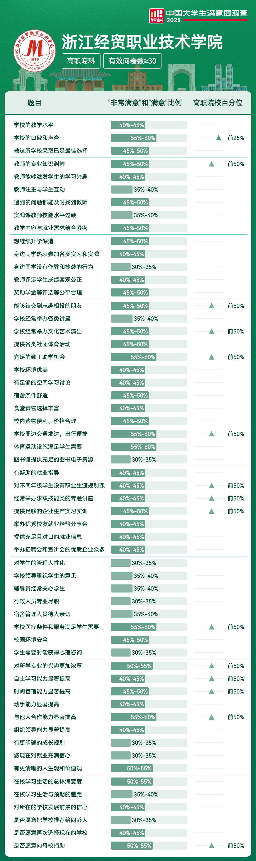 | 学校的口碑和声誉 | 55%-60% | 前25% |