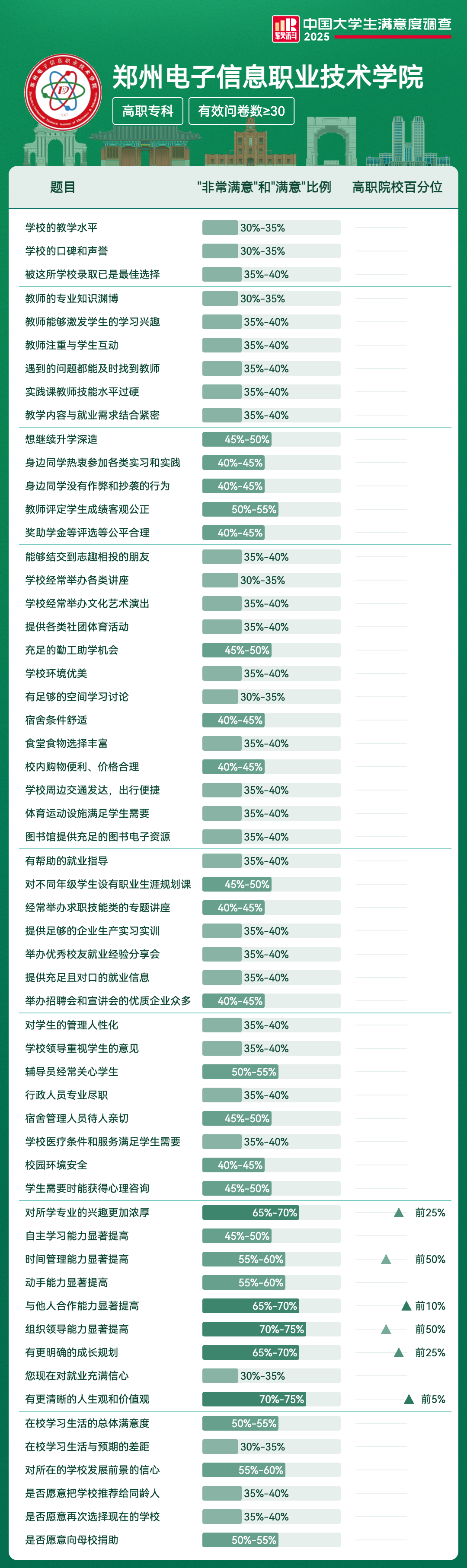 | 对所学专业的兴趣更加浓厚 | 65%-70% | 前25% |