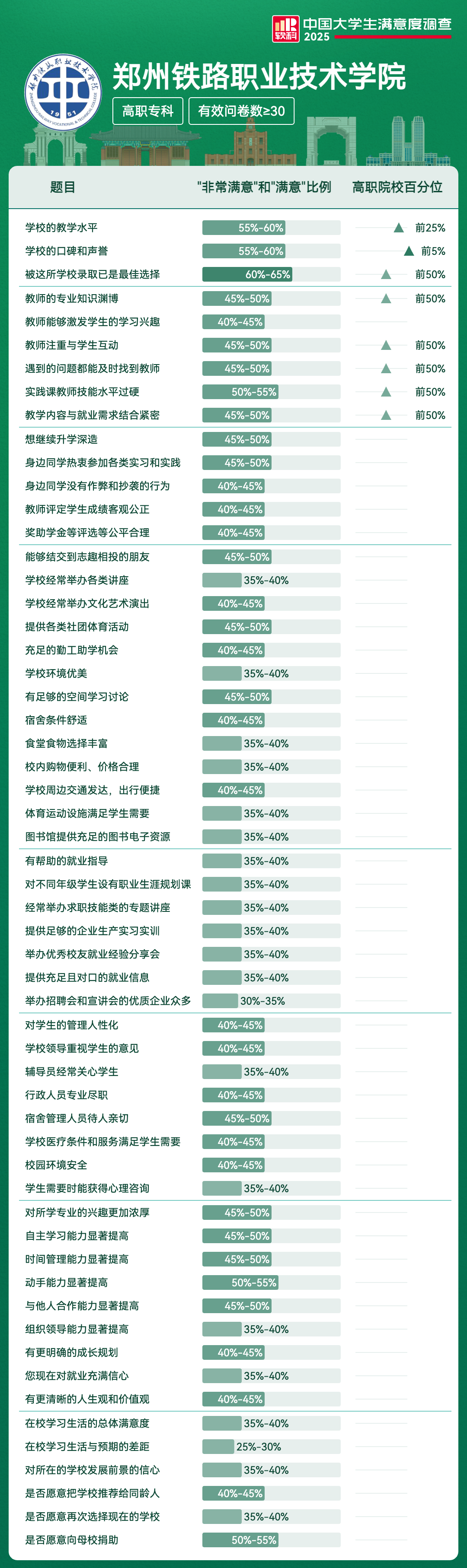 | 学校的口碑和声誉 | 55%-60% | 前5% |